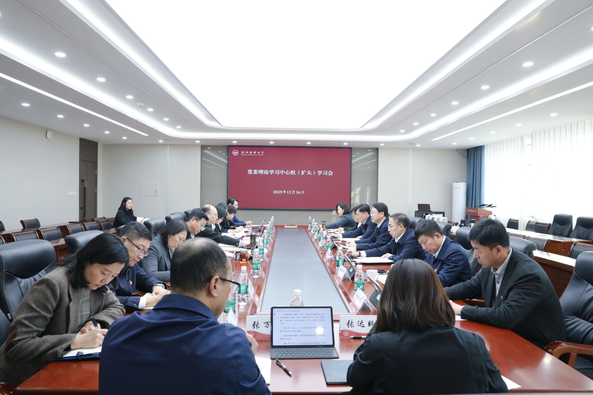 12月16日,沈阳药科大学在沈阳主校区图书馆第二报告厅召开党委理论学习中心组(扩大)学习会。校党委书记高明宇主持会议并讲话,校党委副书记、校长齐炼文及学校领导班子成员关雪峰、李可强、宋少江、路金才、翟鑫出席会议并领学。