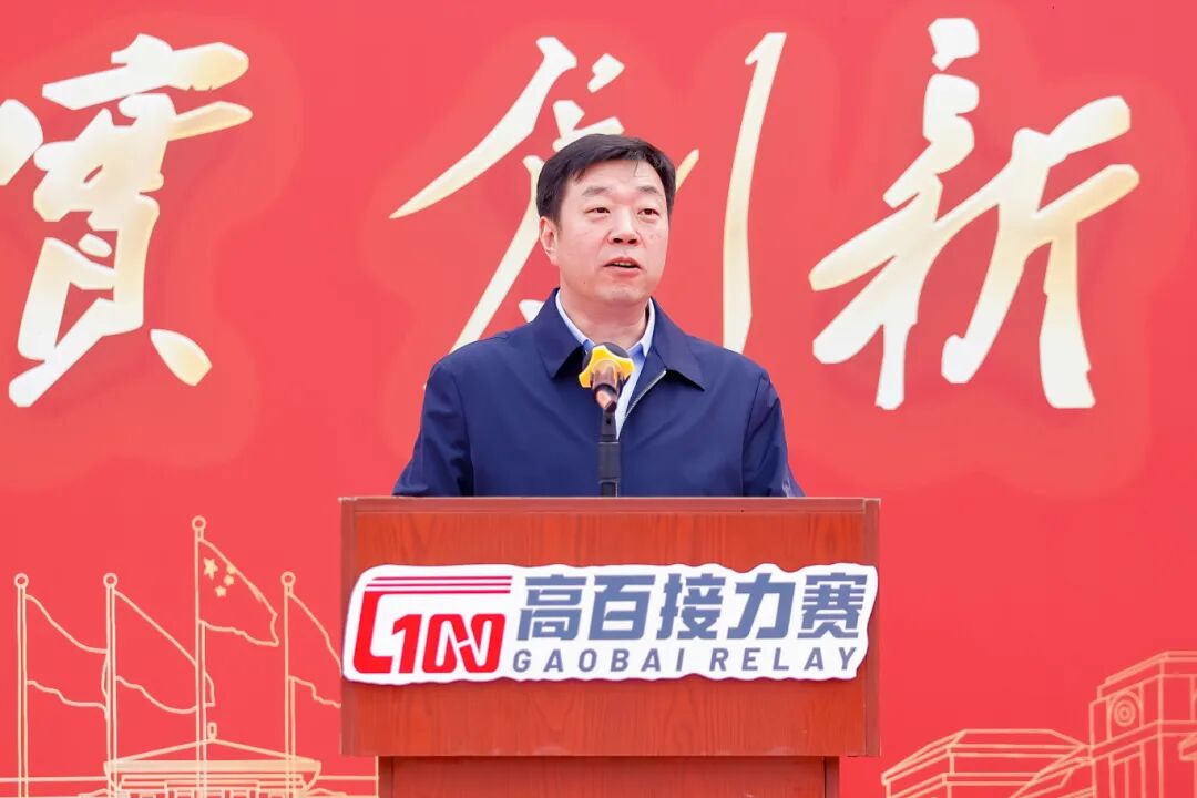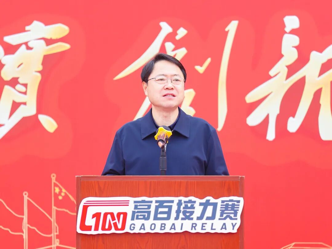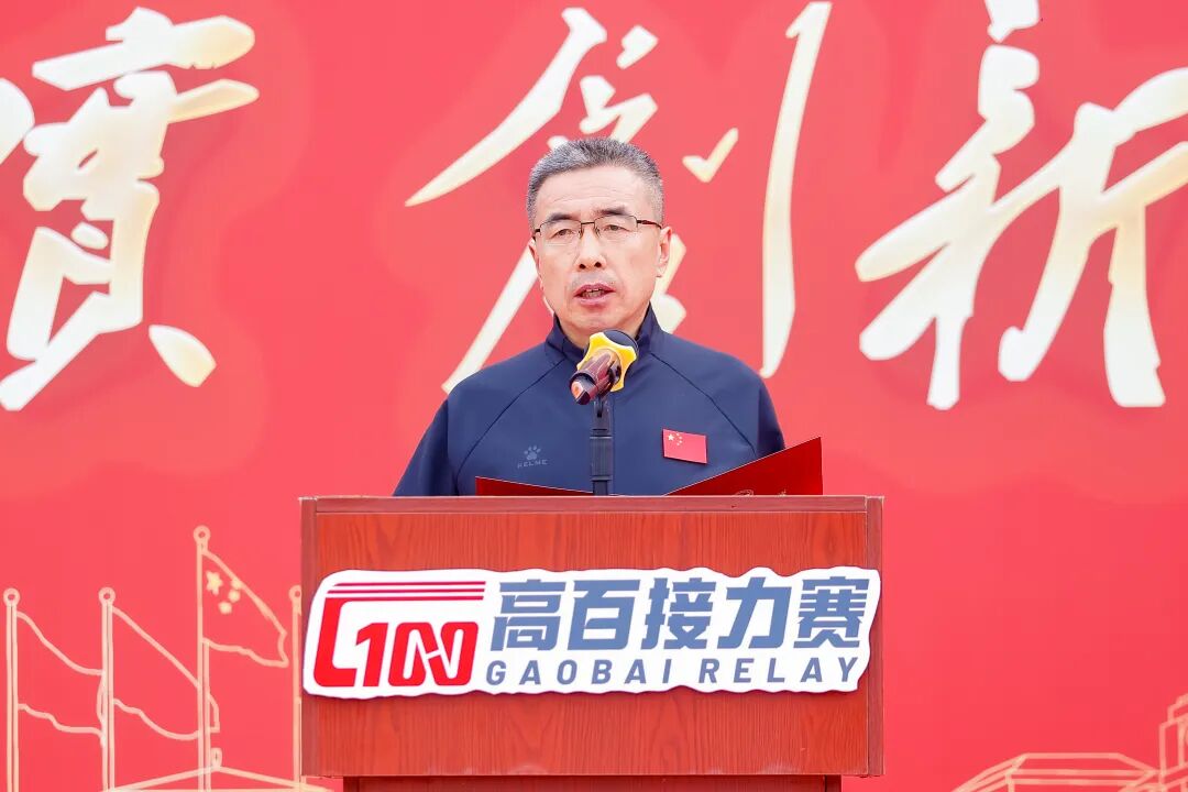 高明宇在致辞中表示,学校连续三年举办比赛,从2023年首次落地、2024年成为永久站点,到今年升级为东北地区唯一赛点及高百十年大区分站赛首站比赛,意义非凡。他表示高百接力赛是凝聚高校力量、弘扬体育精神的重要载体,沈阳药科大学作为1931年诞生于江西瑞金、走过二万五千里长征的具有红色历史文化底蕴的高校,学校始终高度重视体育工作,大力开展师生体育赛事活动,充分发挥体育育人功能。他希望,以赛事举办为契机,进一步推动体教融合、深化校际交流、强化校友联结,将体育热情、文化底蕴与沈药活力有机结合,提升城市形象、推动文体旅融合,为辽宁振兴、东北振兴增添蓬勃活力,为教育强国、体育强国建设贡献高校力量。