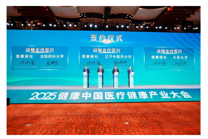 辽宁省副省长单义出席开幕式并讲话。他指出,近年来,辽宁省加快推动卫生健康事业高质量发展,在医药产业发展方面取得显著成效。2025年上半年,辽宁省生物医药和先进医疗装备产业集群工业规模超500亿元,同比增长10%;医药工业总产值累计增速为10.2%,位居全省22个重点产业集群前列。期待与会企业积极投资布局,将资金、技术、管理优势和辽宁产业基础、市场潜力紧密结合,特别是在高端医疗器械制造、智慧医疗、生物制药、康养融合等前沿领域开展深度合作,共同培育具有竞争力的健康产业集群。健康报社董事长、党委书记许培海在致辞中指出,辽宁省是我国重要的老工业基地和沿海开放省份,具有深厚的历史底蕴,肩负重要的发展使命。近年来,辽宁省全力以赴推动医疗健康产业发展,深入推进产业供给侧结构性改革,促进医药创新成果转化。医疗健康产业发展是系统性工程,希望借此会议平台激发新思路、启迪新灵感、促成新共识、推动新合作。健康报社将发挥媒体作用,分享各地在推进健康中国建设过程中攻坚克难的探索和宝贵经验。大会开幕式由健康报社总编辑孙伟主持。孙伟表示,为进一步践行健康优先发展战略,深入落实党中央“推动东北全面振兴取得新突破”决策部署,有力推动卫生健康与医疗产业融合发展,健康报社与多家机构合作,共同筹办此次大会。会上,健康报社与辽宁中医药大学、沈阳药科大学、大连大学签署战略合作协议。孙伟指出,下一步,健康报社将与辽宁多所医学院校开展深度合作。此举是主流媒体服务医学教育事业的实践探索,更是行业主流媒体与高校在健康传播、科技转化等领域的一次深度联手。会上发布《辽宁省生物医药和医疗装备产业投资指南(2025版)》。《指南》围绕产业全景、园区导航、企业矩阵、生态支撑4个核心板块,深度剖析辽宁省特色产业园区布局,列出辽宁省93家标杆企业的核心竞争优势、主打产品等关键信息,呈现了辽宁省生物医药产业高质量发展成果。在主会场的主旨报告环节,中国工程院院士、国家创伤医学中心主任姜保国,中国工程院院士、解放军总医院骨科医学部主任唐佩福分别围绕临床医学研究的创新与思考、骨折智能手术的发展与未来等主题进行分享。大会同时邀请北京中医药大学孙光荣教授、中华中医药学会首席健康科普专家王新陆、长春中医药大学终身教授南征、辽宁中医药大学附属医院原副院长张静生等国医大师,聚焦中医药如何守正创新等话题进行圆桌分享。大会设立11个平行专题会场,涵盖健康体重管理、中医学科建设与高质量发展、健康促进和医工交叉等多个议题。此外,大会特设医疗器械及药品企业、医疗机构和中医药健康服务等展区,为相关产业构建高效对接平台。大会由健康报社主办,中国医科大学附属第四医院、辽宁中医药大学附属医院、辽宁省医学会、辽宁省医师协会、辽宁省医院协会、辽宁省中医药学会联合主办。